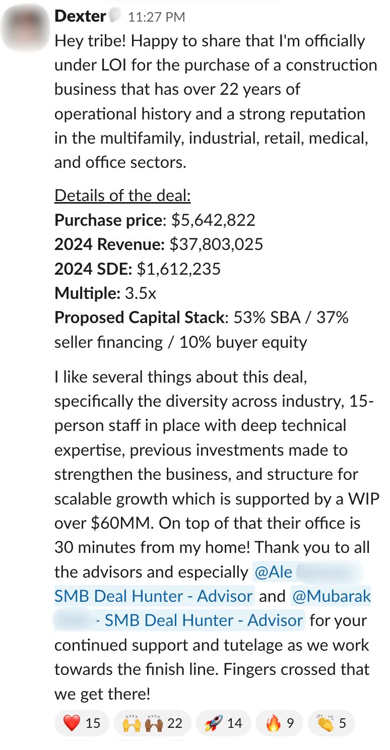 📣 Last Call: I’m investing in the acquisition of a lighting controls and energy management systems company and opening it to a few SMB Deal Hunter members. Learn more about this fully passive opportunity.