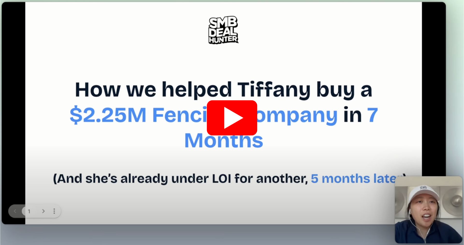 And within 7 months of joining SMB Deal Hunter Pro, our business buying accelerator, she bought a $2.2M fencing business in North Carolina cash-flowing over $800K/year.
