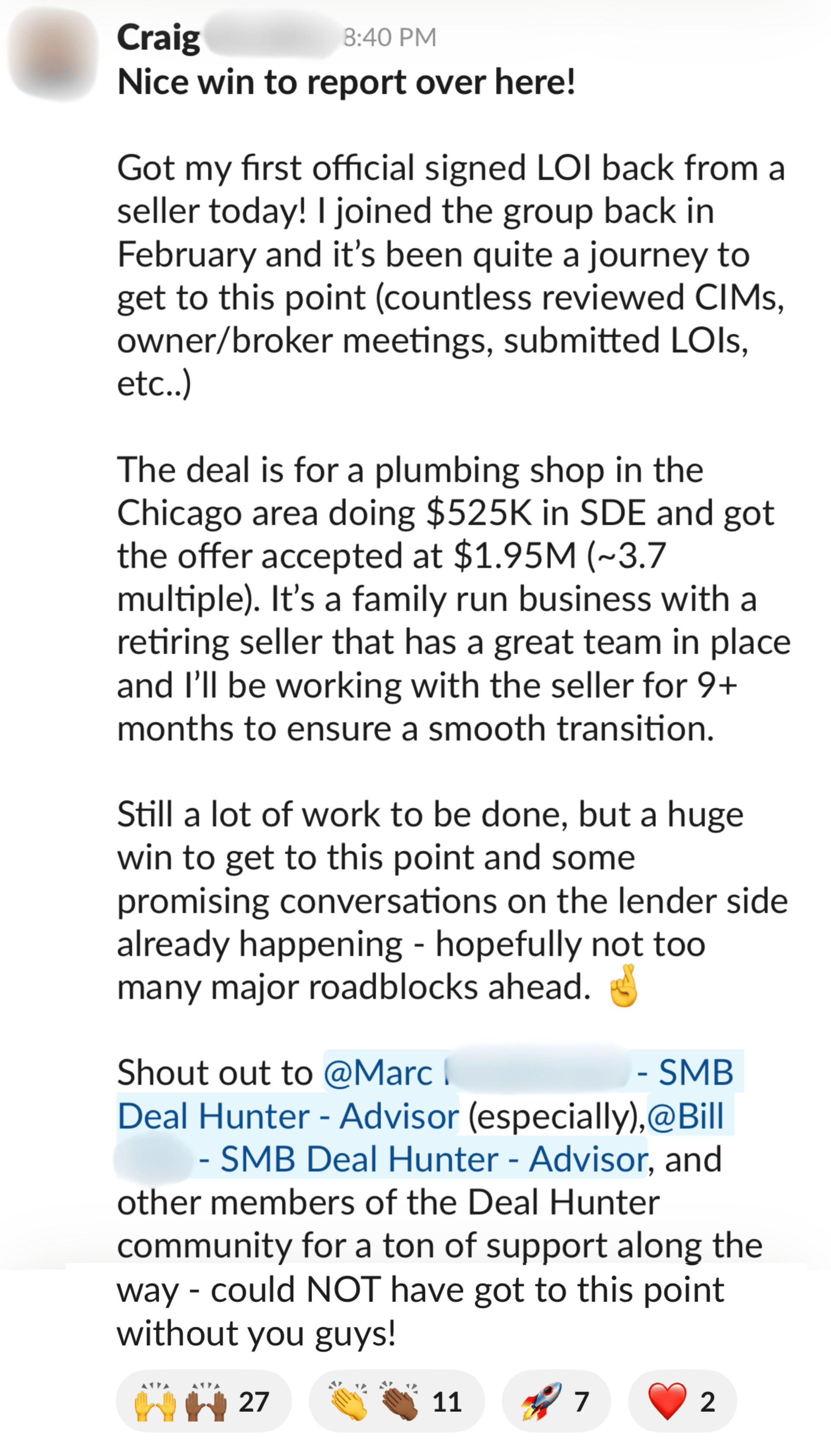 β’ Raising capital for your deal? Iβll connect you with investors from the SMB Deal Hunter Community.
