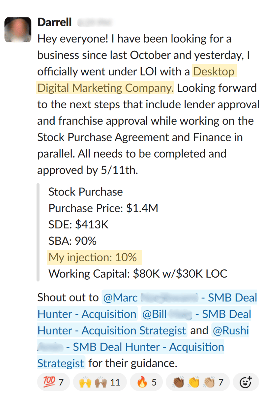 Here’s what one SMB Deal Hunter Pro member shared this past week: